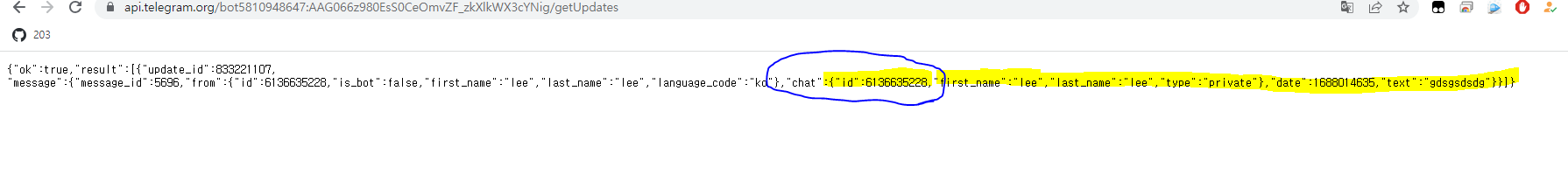 16. https://api.telegram.org/bot5810948647:AAG066z980EsS0CeOmvZF_zkXlkWX3cYNig/getUpdates 접속